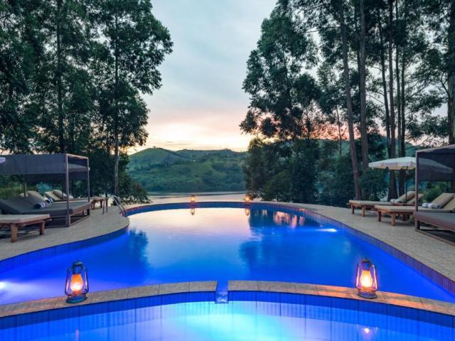 At the heart of the property lies a welcoming lounge, restaurant, and bar, where guests can relax after a day of exploration. A sparkling swimming pool overlooks the crater lake, while campfire evenings add warmth and atmosphere under the stars. Days here can be as active or as restful as you wish â from chimp tracking in the forest and birding in Bigodi Wetland to leisurely crater lake walks, canoeing, or simply unwinding with a drink in hand as the sun sets over the water.