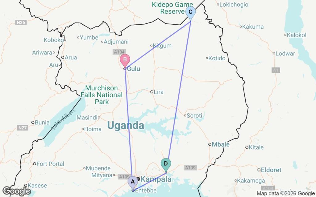 Entebbe | Gulu | Kidepo Valley National Park | Jinja