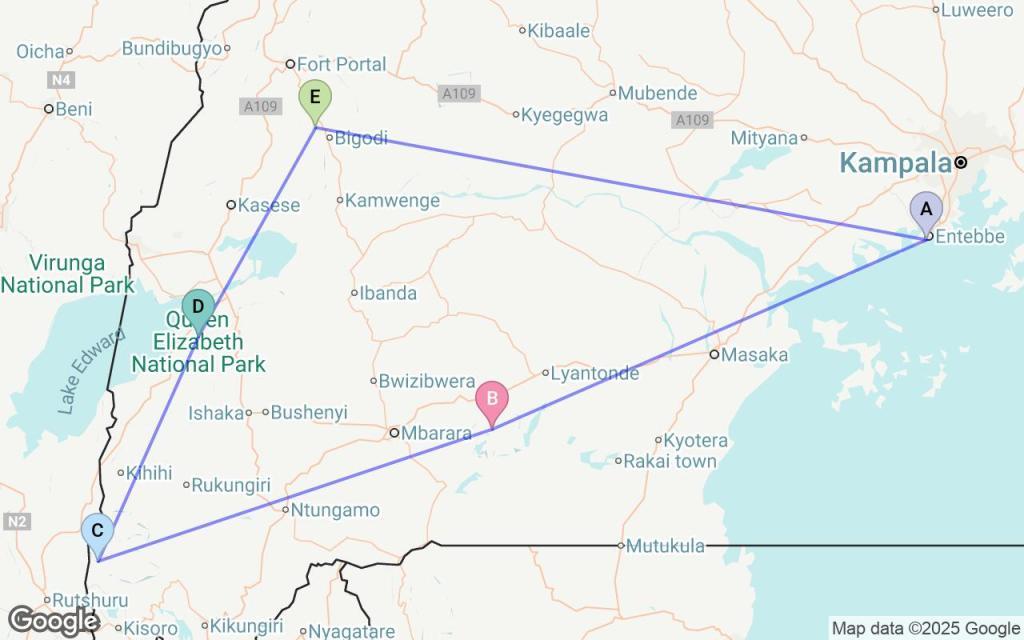 | Day 1 | Entebbe | Arrrive in Entebbe and Overnight at Hotel. | PAPYRUS GUEST HOUSE Standard - Double / Twin | BB |